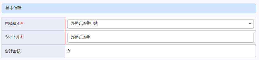 ※先に明細タブで明細を作成し、この画面で纏めて申請をする事も可能です。
