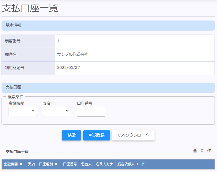 | 金融機関 | 支払口座として登録する金融機関をセットします。 |