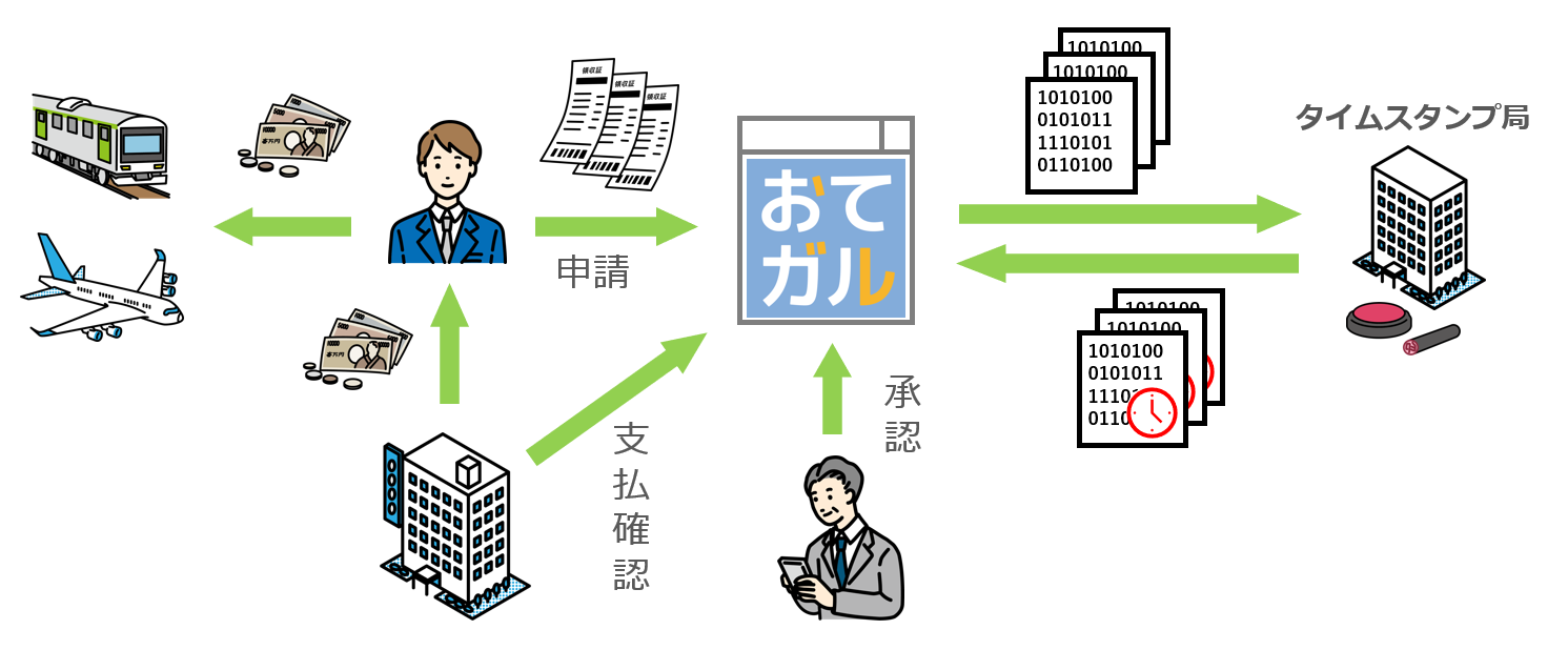 申請には証憑を添付(アップロード)する事ができ、添付したファイルにはタイムスタンプが付きます。