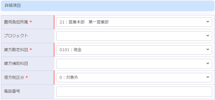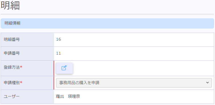 | ユーザー | 明細を作成したユーザー名を表示させます。 |