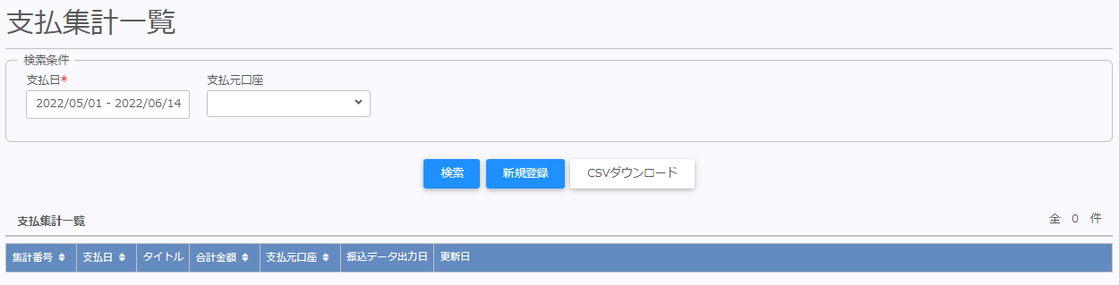 | チェックボックス | 支払対象となる明細にチェックを付けます。 項目名のボックスにチェックを入れる事で、全ての明細にチェックを付ける事ができます。 |