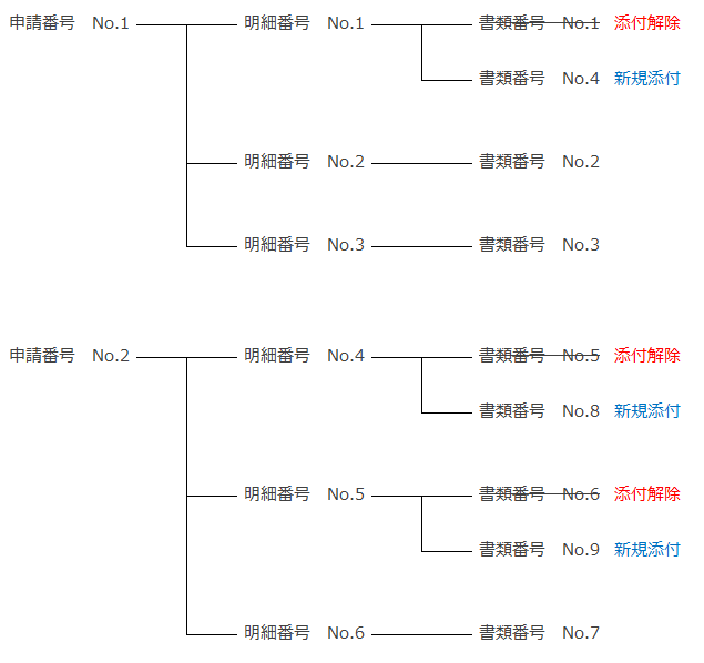 明細番号と書類番号は別で管理されます。書類番号はアップロードされた順番で自動的に附番され、番号が重複する事はありません。