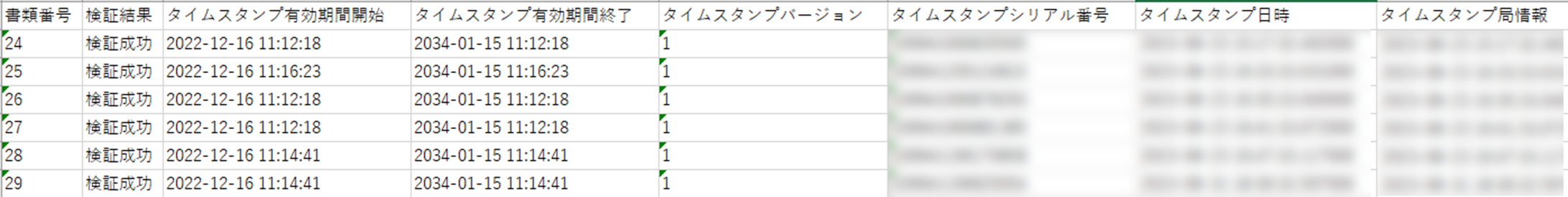 | 実行日時 終了日時 | タイムスタンプ検証を行った日付と終了をした日付を表示します。 |