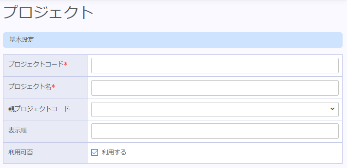| 親プロジェクトコード | 親となるプロジェクトコードをセットします。 |