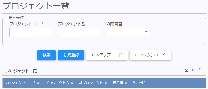 | CSVアップロード | CSVファイルで作成したプロジェクトをインポートできます。 |