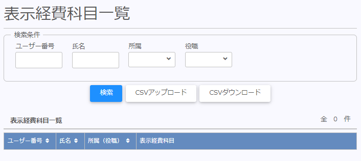 | CSVアップロード | CSVファイルで作成した経費科目をインポートできます。 |