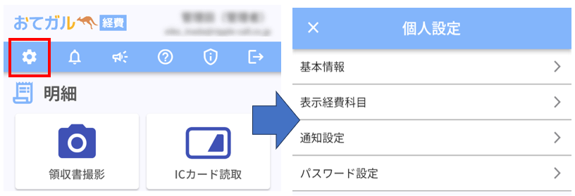 ※ユーザー設定>権限>個人設定を「無効」に設定している場合は非表示となります。