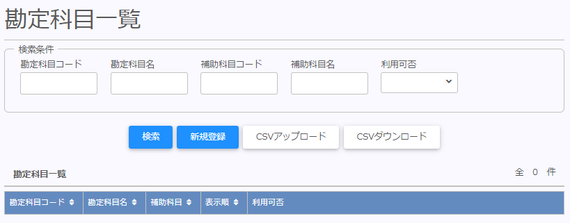 勘定科目とそれに紐付く補助科目を設定します。