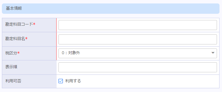 | 勘定科目コード | 勘定科目コードを入力します。 |