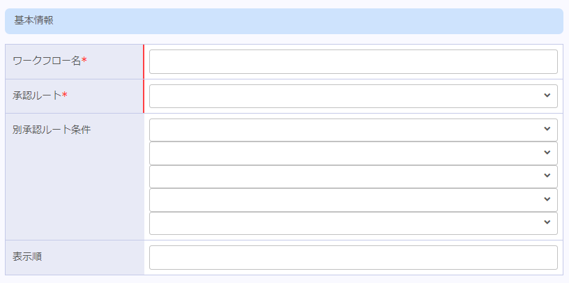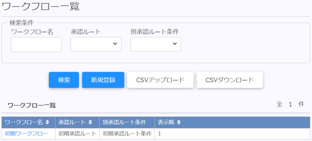 | CSVアップロード | CSVファイルで作成したワークフローをインポートできます。 |
