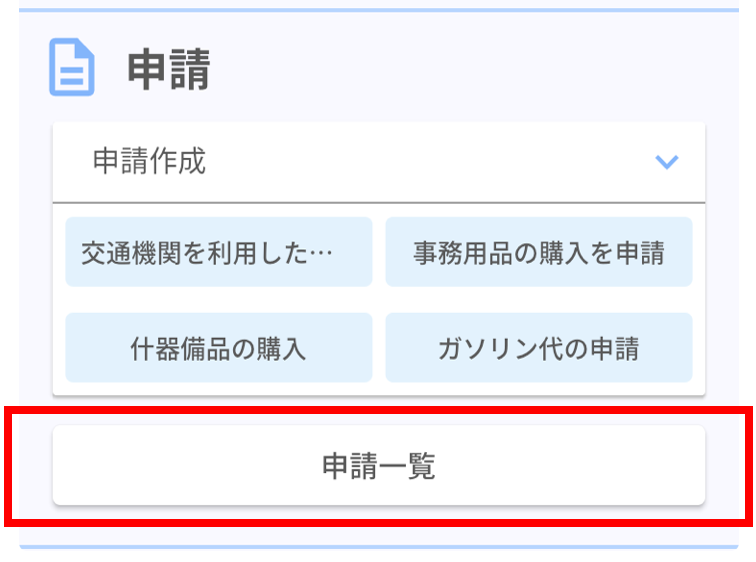 申請の内容確認や「承認待ち」申請の「取り下げ」、