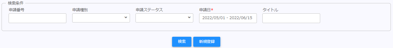 | 検索条件 | 各ステータスを組み合わせて条件をセットする事ができます。 「*」付き以外の検索条件項目欄は、入力なしでも検索する事が可能です。 |